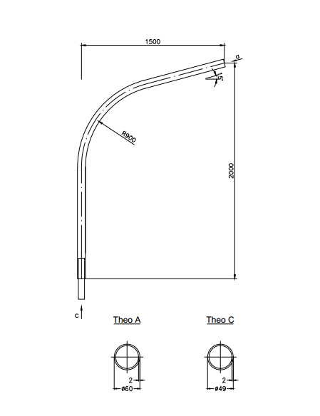 – Cần đèn đơn phi 60, cần đèn đơn kiểu
