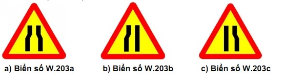 Điểm đặc trưng của các biển này là có hình tam giác đều, ba đỉnh lượn tròn; một cạnh nằm ngang, đỉnh tương ứng hướng lên trên, trừ biển số W.208.